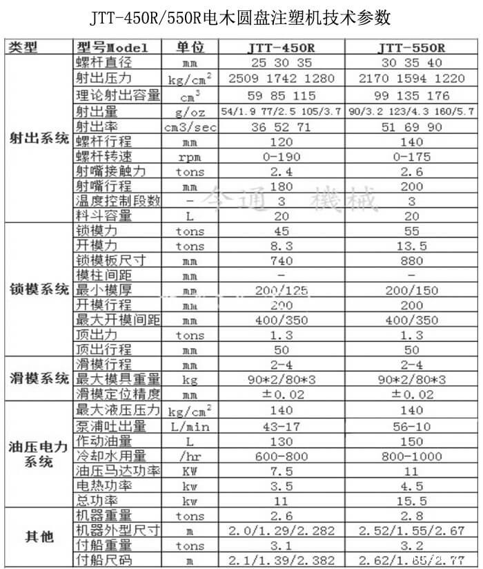 7、今通同类型机器的差别为参数的不同,本款机器锁模力:55-120T;射出量:1-353g