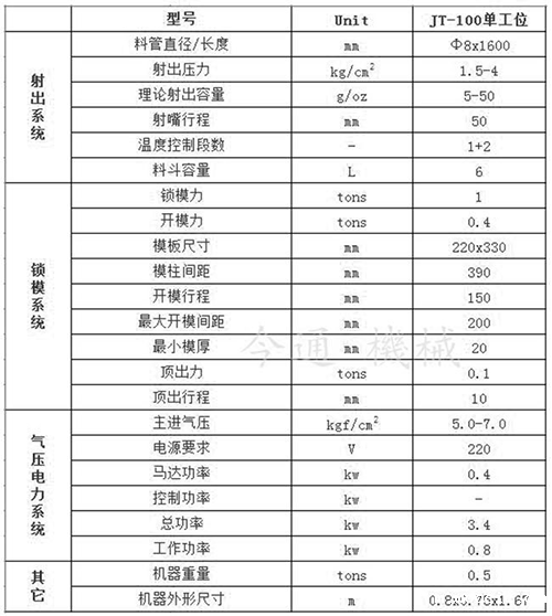 f.本款机器射出量:1-500g,锁模力:1-5T