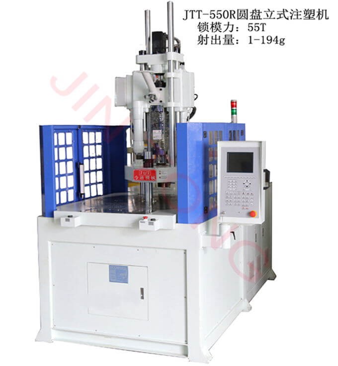 1、本款机器为今通JTT-550R华体会真人平台,采用立式锁模、立式注塑机、圆盘多站位设计、圆盘锁模设计可放置多副模具,提高生产效率。