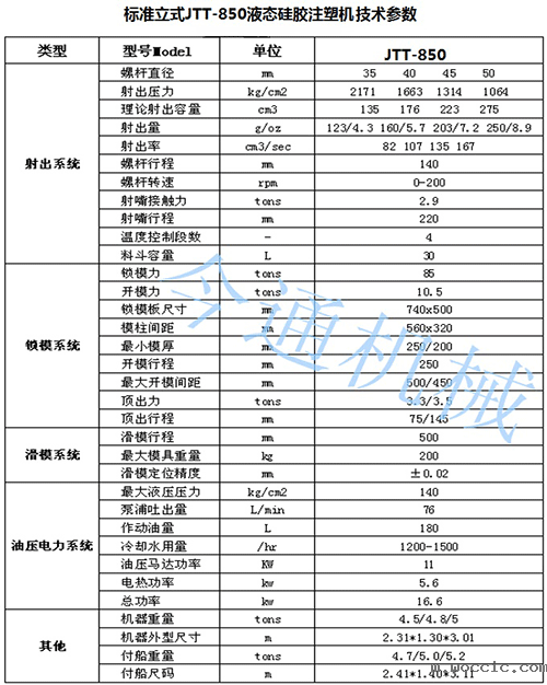 本款产品为今通标准立式JTT-850液态硅胶注塑机